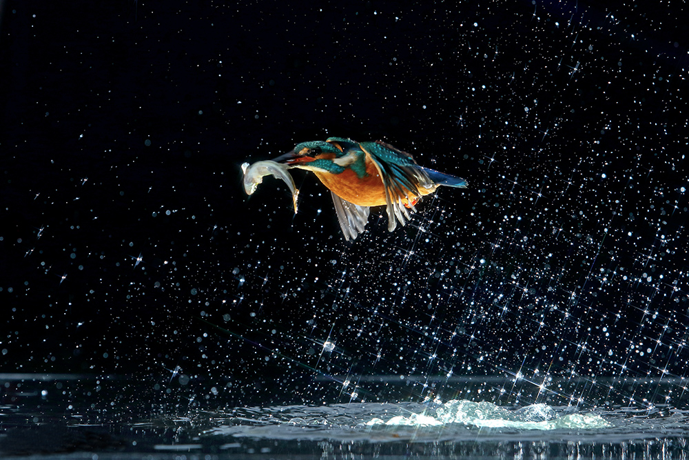 En 2014, j’ai photographié le jeu des gouttes sortant du bec de grandes aigrettes avec la lumière à contre-jour en plein hiver.